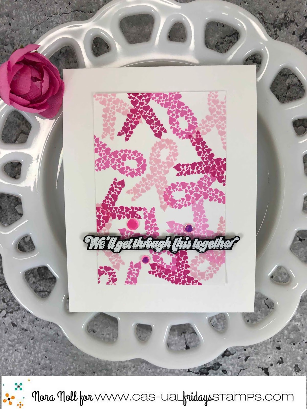 My last step was to adhere some random sequins around the sentiment. Below is a peek at the new "Hope Ribbon" stamp set.