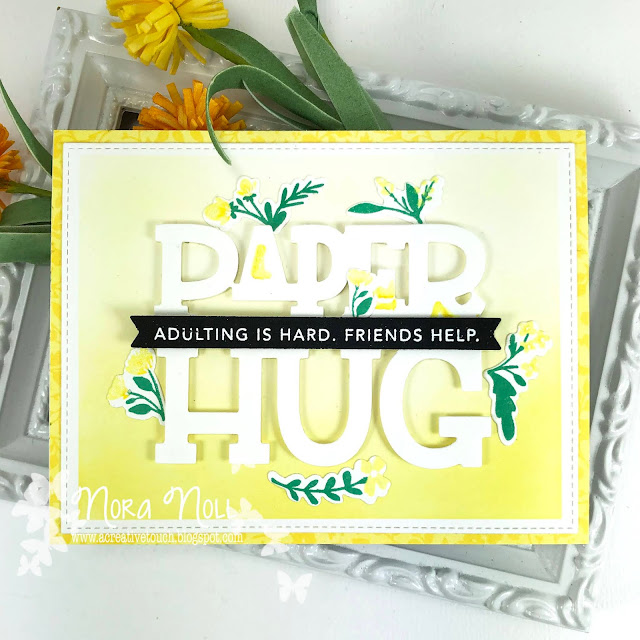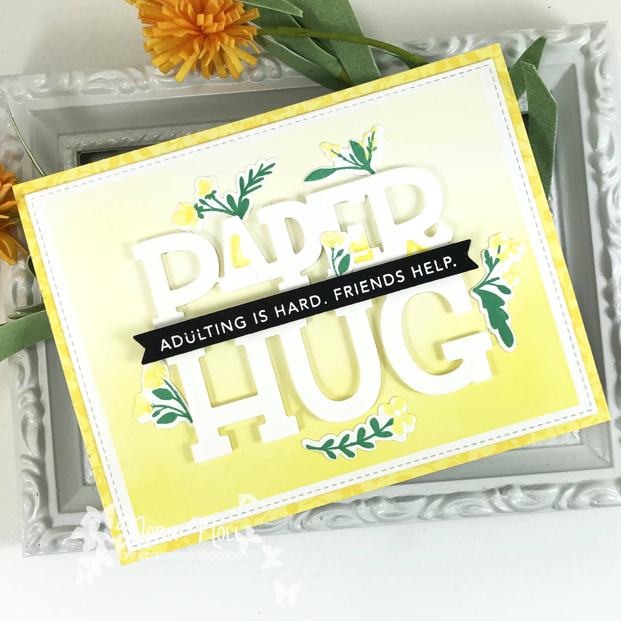 The last card I created just because. I used a Stamp Market Paper Hug die (retired) with The Greetery's Alpha Buds Floral Detail stamps and dies.